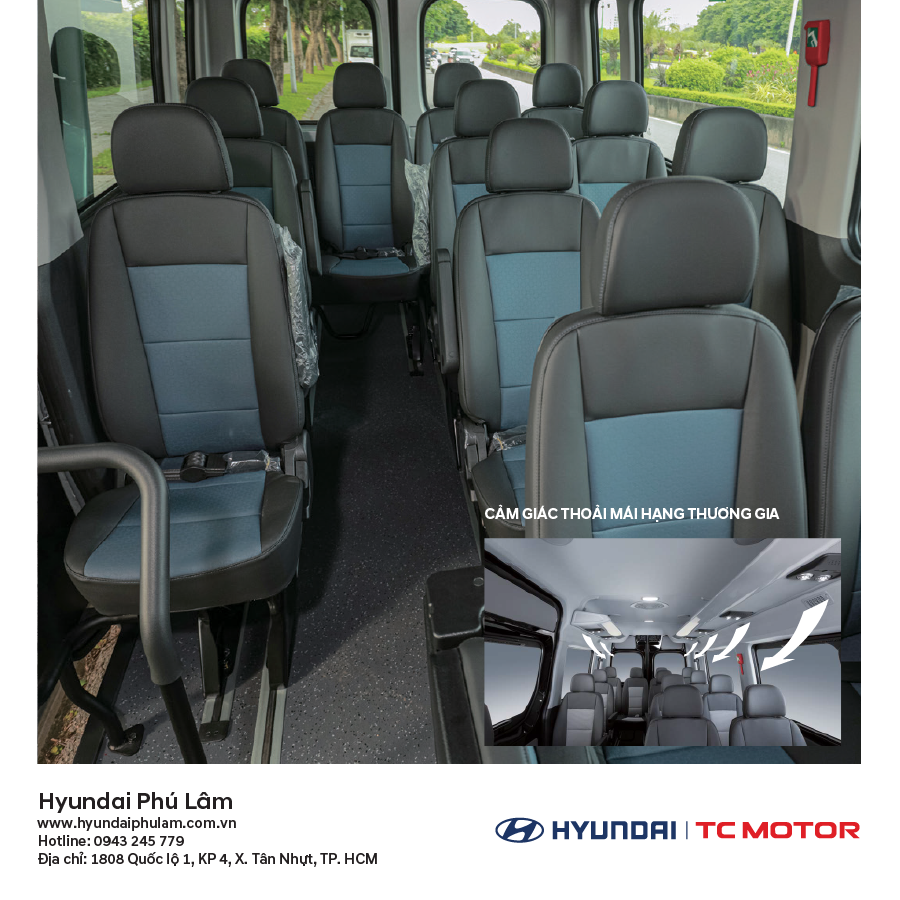 Ghế ngồi được thiết kế khoa học, khoảng để chân rộng, lối đi giữa thoải mái, giúp việc di chuyển trong xe dễ dàng. Đây là điểm cộng rất lớn cho các đơn vị khai thác xe du lịch, xe hợp đồng hoặc xe đưa đón hằng ngày.